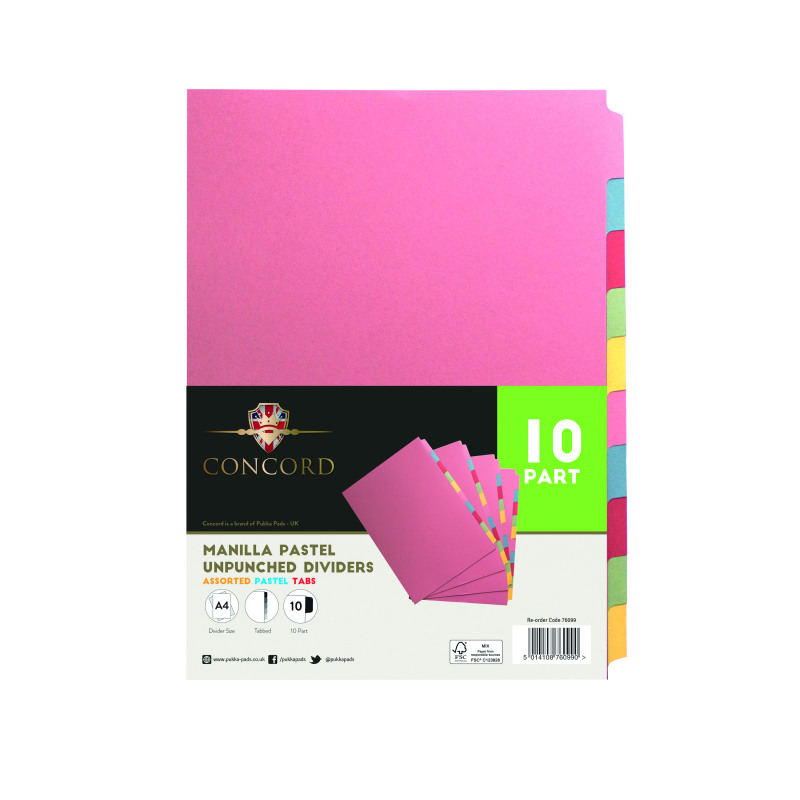 Concord Unpunched Divider 10-Part A4 Multicoloured (Pack of 10) 76099